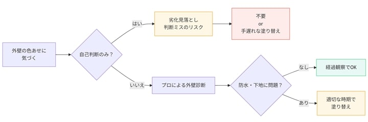 外壁の色あせには経過観察で問題ない状態と早急な塗り替えが必要な状態があり、その違いを正しく理解することが重要です。