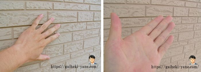 - 色あせと同時に外壁を触ると白い粉が付着する