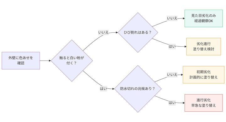 | 外壁の状態 | 色あせの特徴 | 塗り替え判断 |