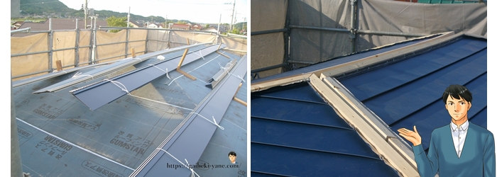 - 棟・ケラバ・谷部分は防水層の重なりをとくに丁寧に施工